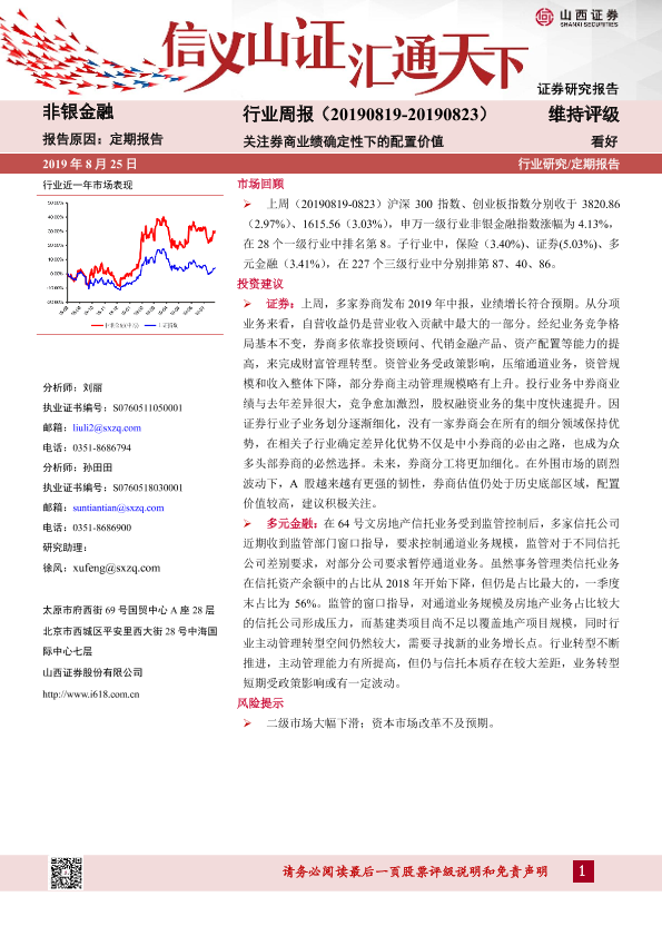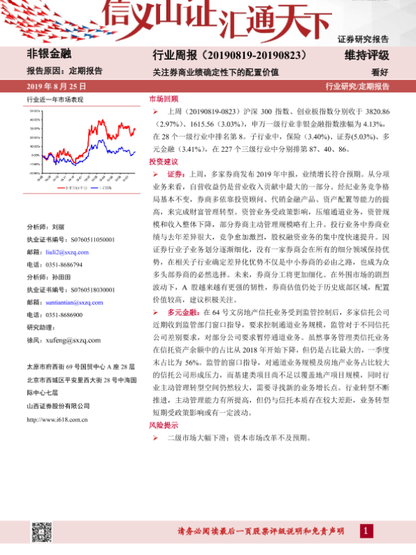【山西证券】【20190825】非银金融行业周报:关注券商业绩确定性下的配置价值-7页