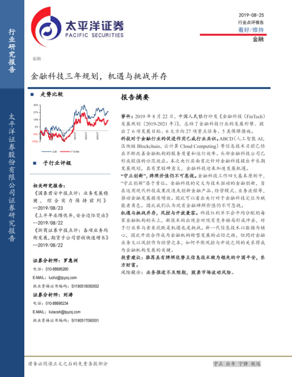 【太平洋证券】【20190825】金融科技三年规划,机遇与挑战并存-3页