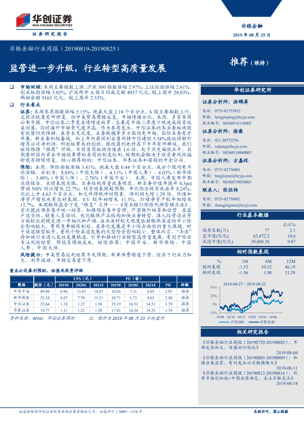【华创证券】【20190825】非银金融行业周报:监管进一步升级,行业转型高质量发展-20页