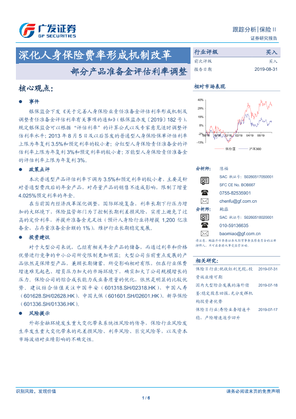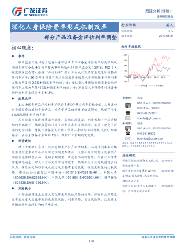 【广发证券】【20190831】深化人身保险费率形成机制改革:部分产品准备金评估利率调整-6页