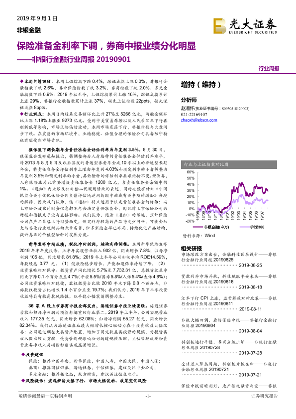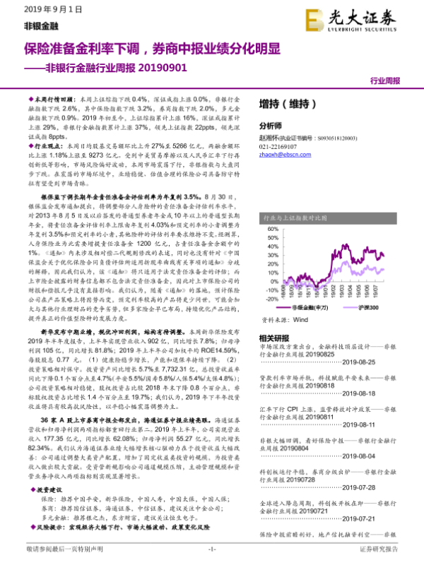 【光大证券】【20190901】非银行金融行业周报:保险准备金利率下调,券商中报业绩分化明显-15页