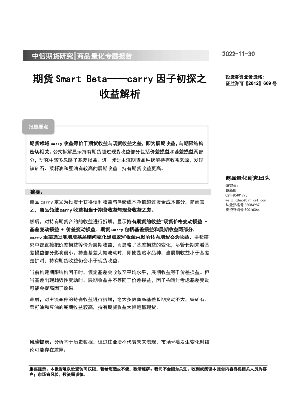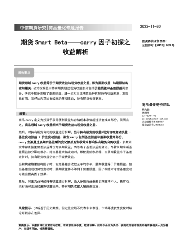 【中信期货】【20221130】carry因子初探之收益解析:期货Smart Beta-15页