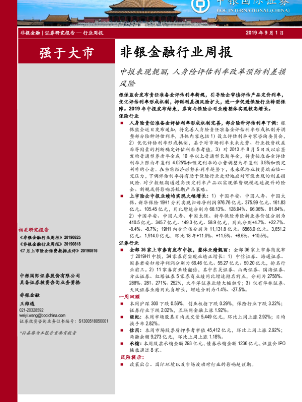 【中银证券】【20190901】非银金融行业周报:中报表现靓丽,人身险评估利率改革预防利差损风险-12页