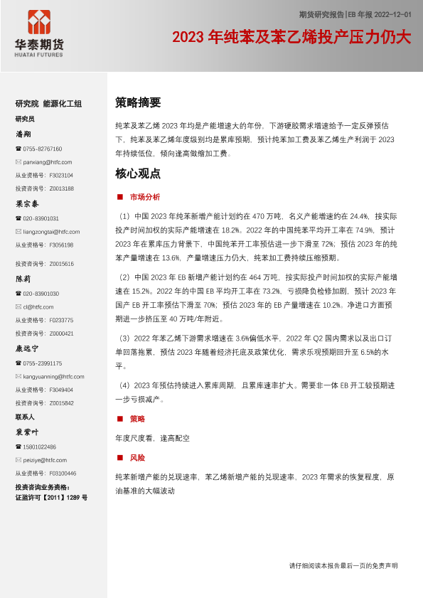 【华泰期货】【20221201】EB年报:2023年纯苯及苯乙烯投产压力仍大-24页
