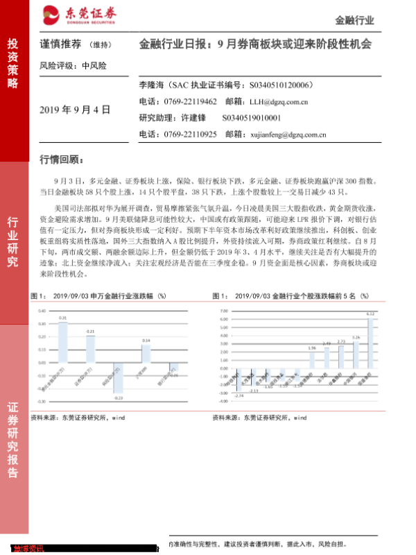 【东莞证券】【20190904】9月券商板块或迎来阶段性机会-4页
