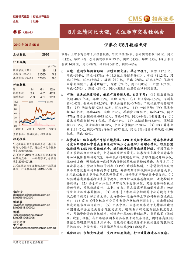 【海通证券】【20190905】证券公司8月数据点评:8月业绩同比大涨,关注后市交易性机会-3页