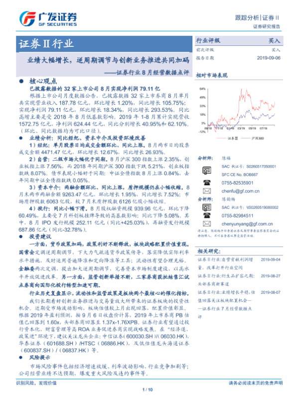 【广发证券】【20190906】证券行业8月经营数据点评:业绩大幅增长,逆周期调节与创新业务推进共同加码-10页