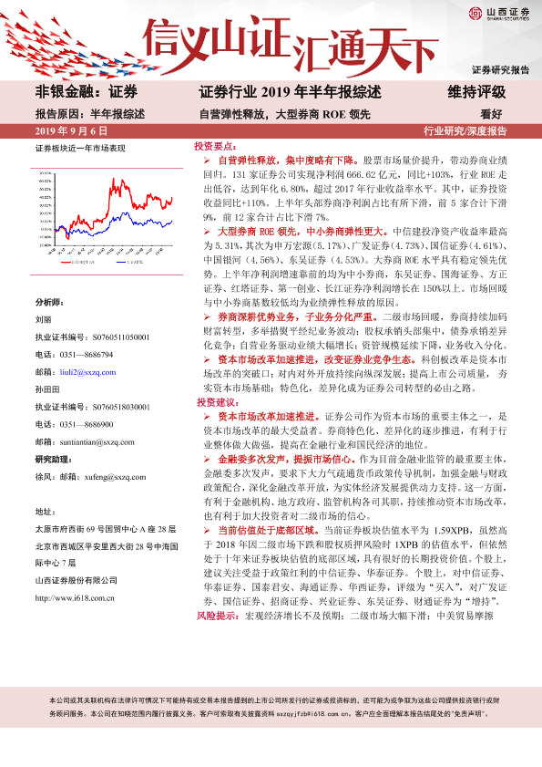 【山西证券】【20190906】证券行业2019年半年报综述:自营弹性释放,大型券商ROE领先-21页