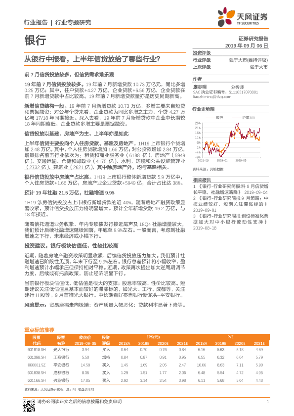 【天风证券】【20190906】从银行中报看,上半年信贷放给了哪些行业?-10页