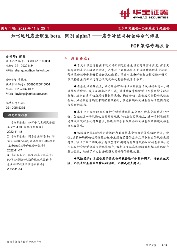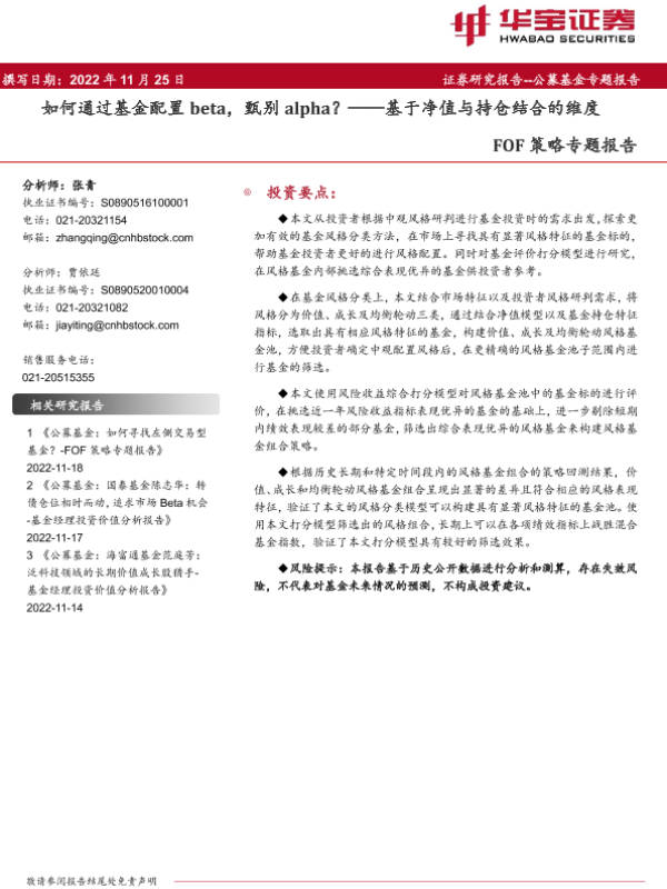 【华宝证券】【20221125】FOF策略专题报告:基于净值与持仓结合的维度,如何通过基金配置beta,甄别alpha?-19页