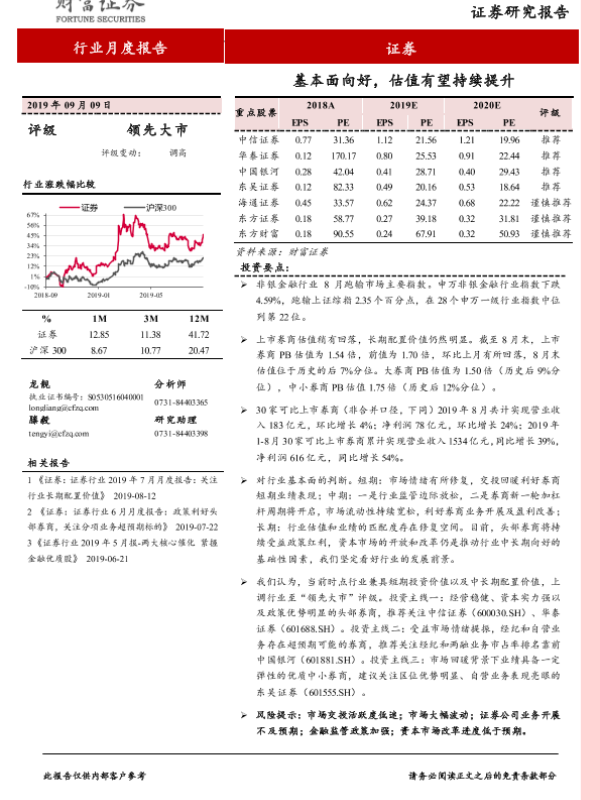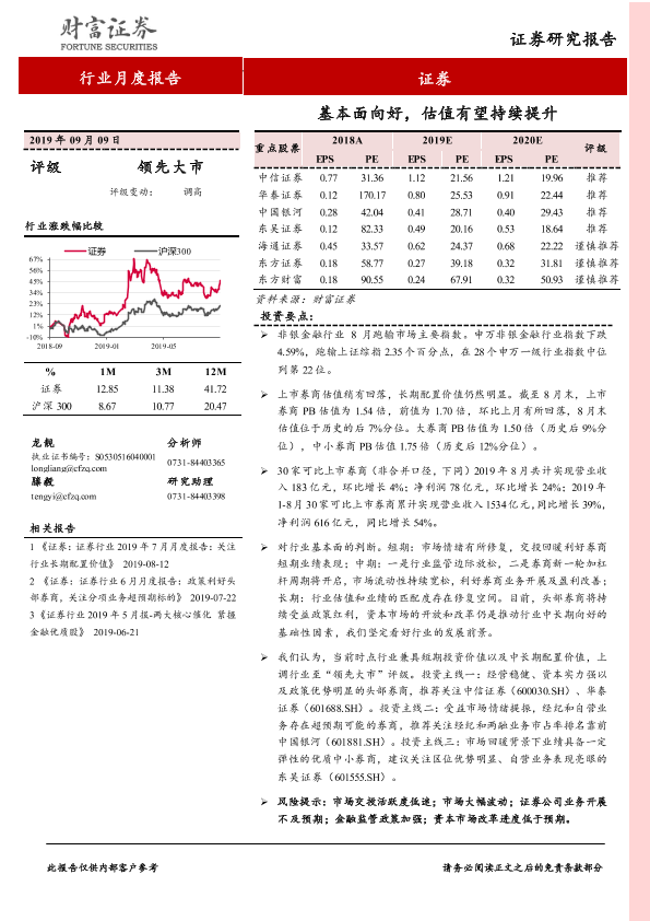 【财信证券】【20190909】证券行业月度报告:基本面向好,估值有望持续提升-11页