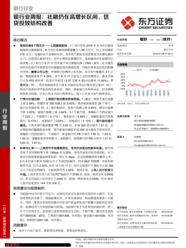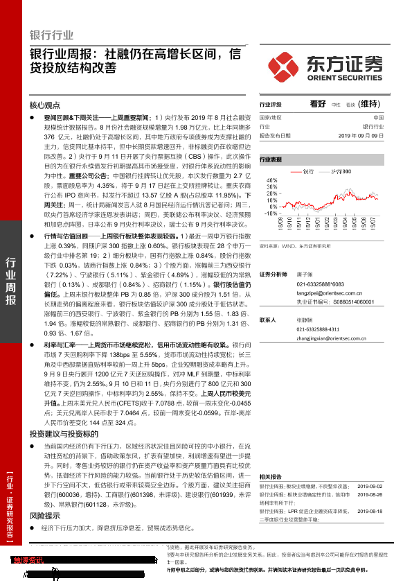 【东方证券】【20190909】银行业周报:社融仍在高增长区间,信贷投放结构改善-12页