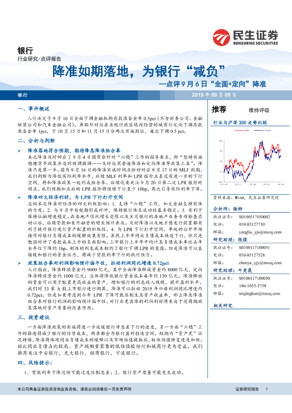 【民生证券】【20190909】9月6日“全面+定向”降准:降准如期落地,为银行“减负”-7页