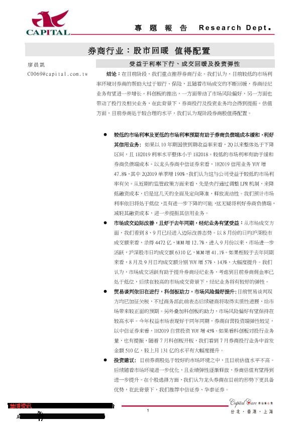 【群益证券】【20190909】券商行业:股市回暖,值得配置-2页