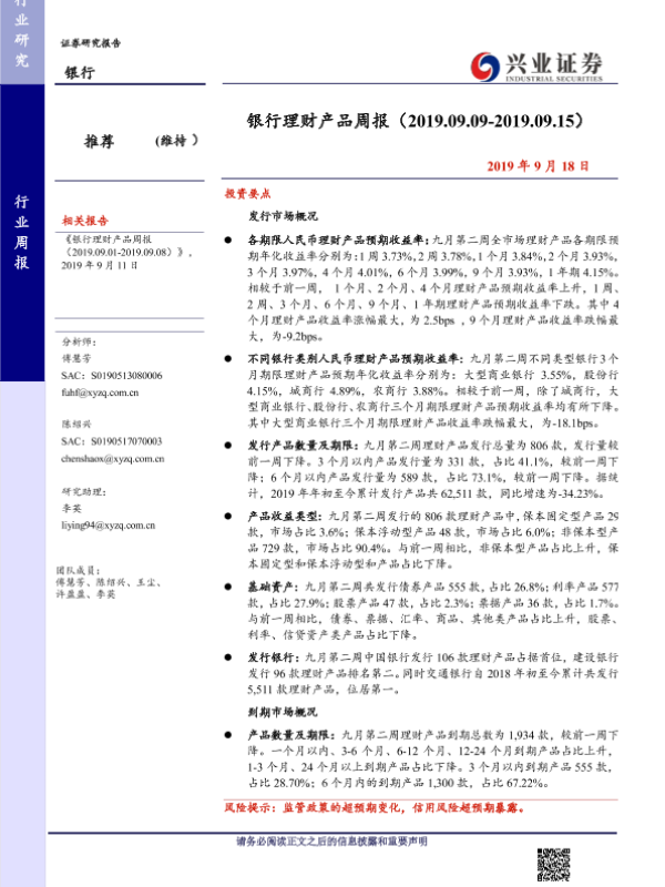 【兴业证券】【20190918】银行理财产品周报-16页