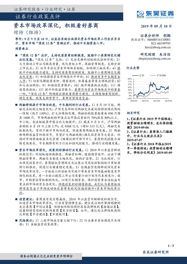 【东吴证券】【20190910】证券行业政策点评:资本市场改革深化,积极看好券商-3页