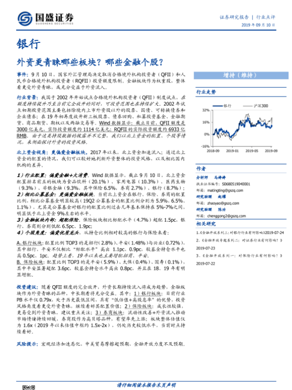 【国盛证券】【20190910】银行:外资更青睐哪些板块?哪些金融个股?-4页