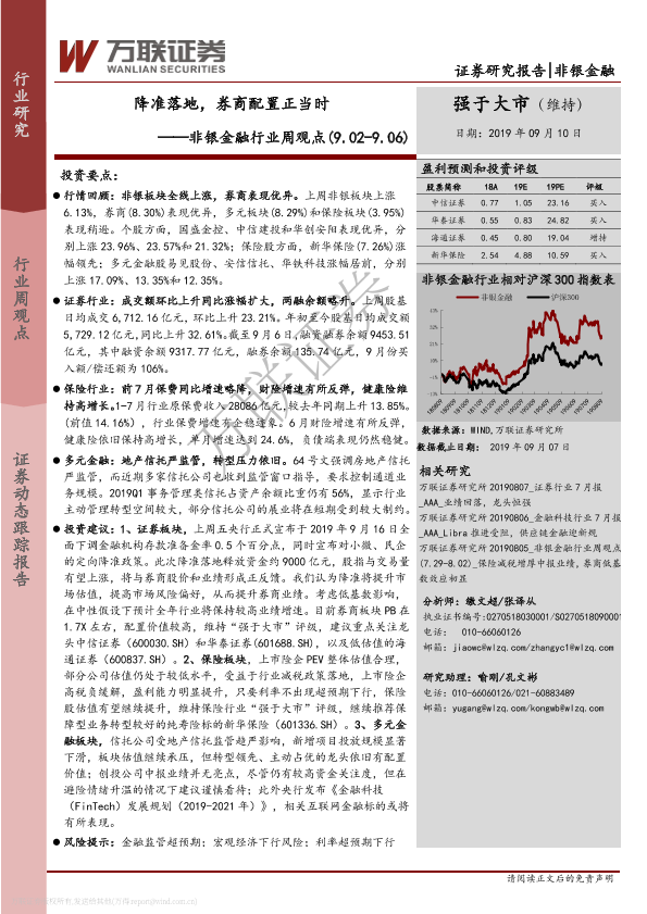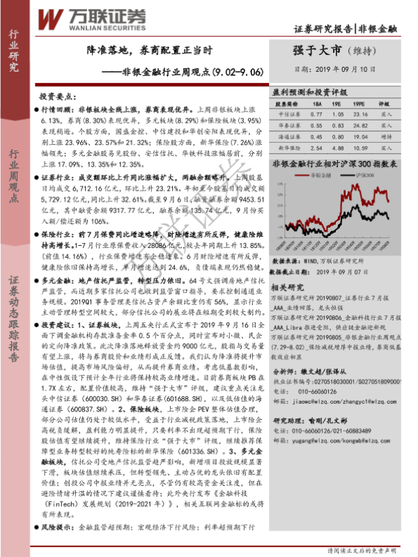 【万联证券】【20190910】非银金融行业周观点:降准落地,券商配置正当时-15页
