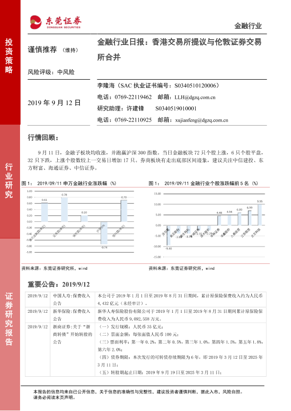 【东莞证券】【20190912】金融行业日报:香港交易所提议与伦敦证券交易所合并-4页