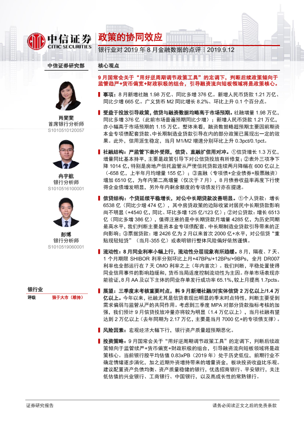 【中信证券】【20190912】银行业对2019年8月金融数据的点评:政策的协同效应-3页