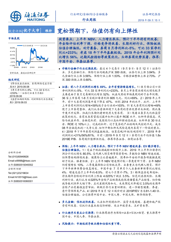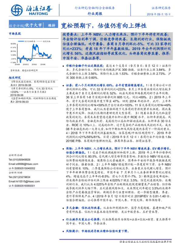 【海通证券】【20190915】综合金融服务行业周报:宽松预期下,估值仍有向上弹性-9页