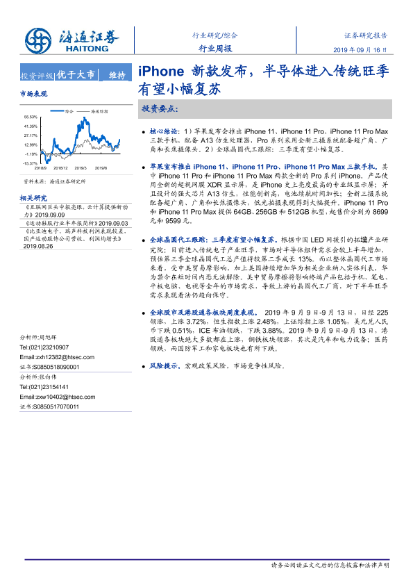 【海通证券】【20190916】综合行业周报:iPhone新款发布,半导体进入传统旺季有望小幅复苏-5页