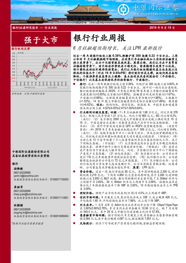 【中银证券】【20190915】8月社融超预期增长,关注LPR最新报价-18页