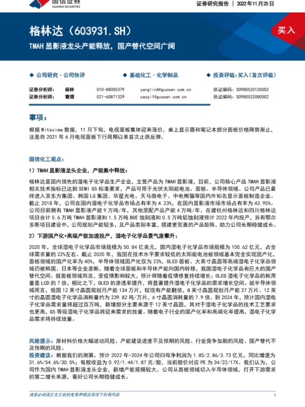 【国信证券】【20221125】TMAH显影液龙头产能释放,国产替代空间广阔-17页