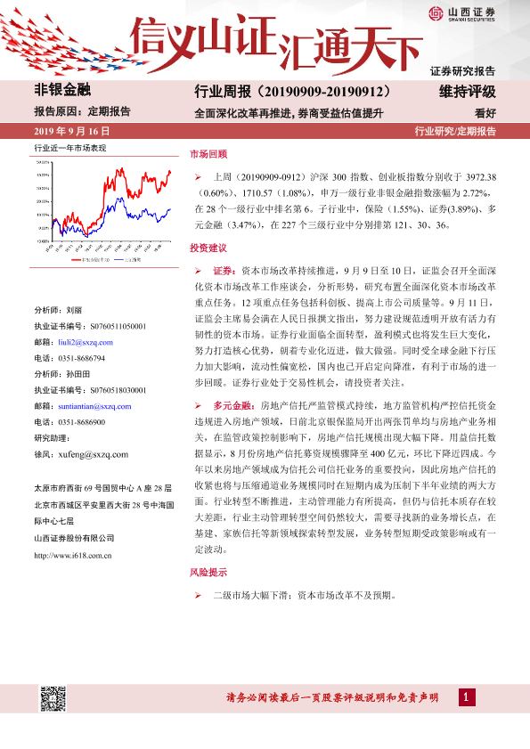 【山西证券】【20190916】非银金融行业周报:全面深化改革再推进,券商受益估值提升-7页