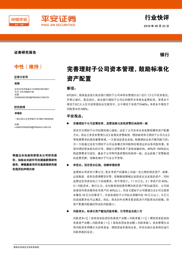 【平安证券】【20190923】银行行业快评:完善理财子公司资本管理,鼓励标准化资产配置-5页