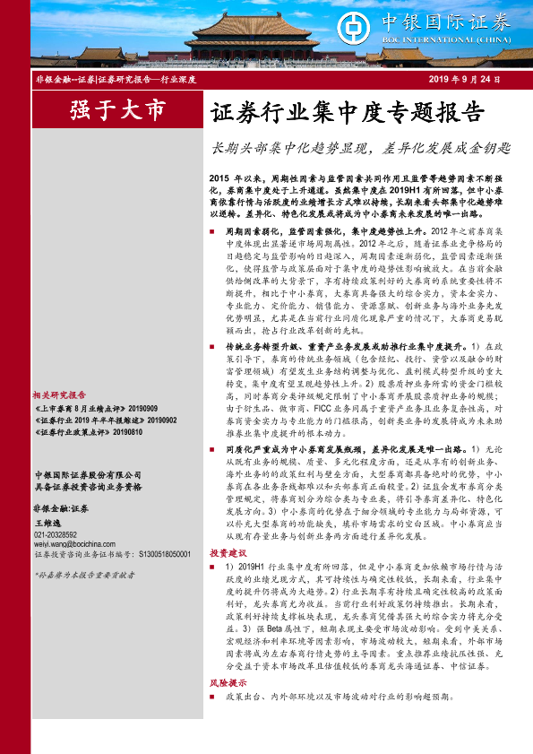 【中银证券】【20190924】证券行业集中度专题报告:长期头部集中化趋势显现,差异化发展成金钥匙-23页
