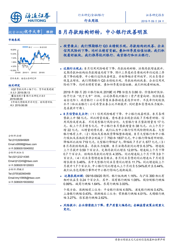 【海通证券】【20190924】8月存款结构好转,中小银行改善明显-8页