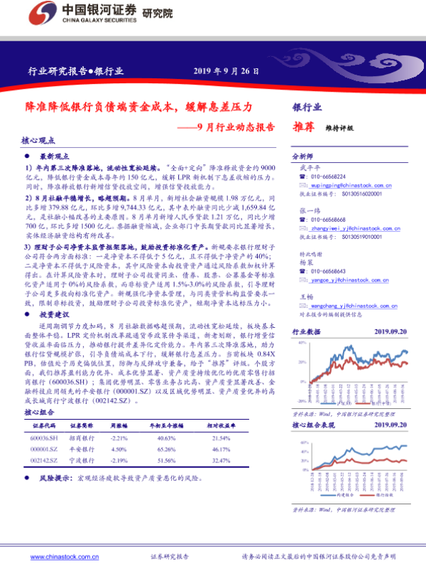 【银河证券】【20190926】降准降低银行负债端资金成本,缓解息差压力——9月行业动态报告-26页