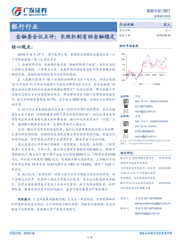 【广发证券】【20190930】银行行业金融委会议点评:长效机制有助金融稳定-4页