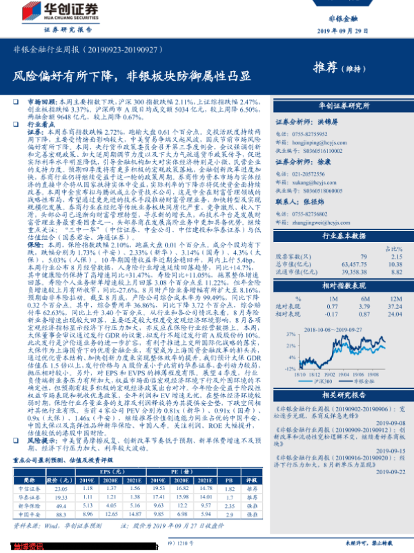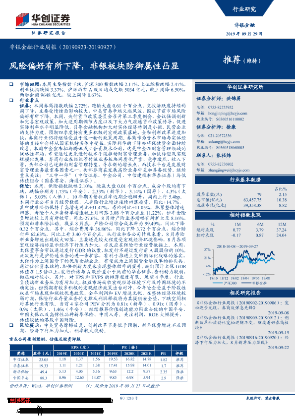 【华创证券】【20190929】非银金融行业周报:风险偏好有所下降,非银板块防御属性凸显-18页
