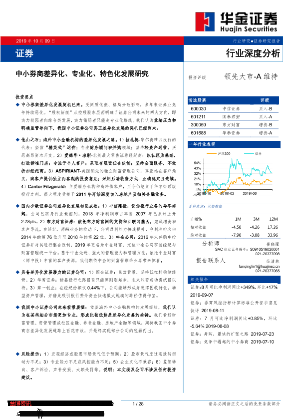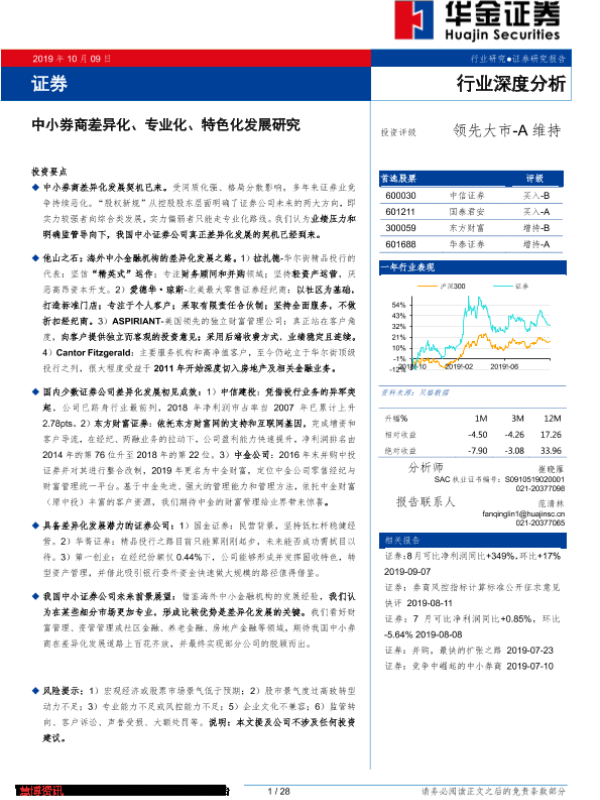 【华金证券】【20191009】证券行业深度分析:中小券商差异化、专业化、特色化发展研究-28页