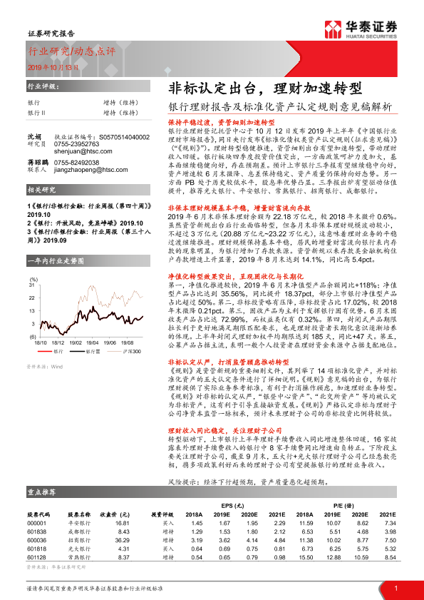 【华泰证券】【20191013】银行理财报告及标准化资产认定规则意见稿解析:非标认定出台,理财加速转型-6页