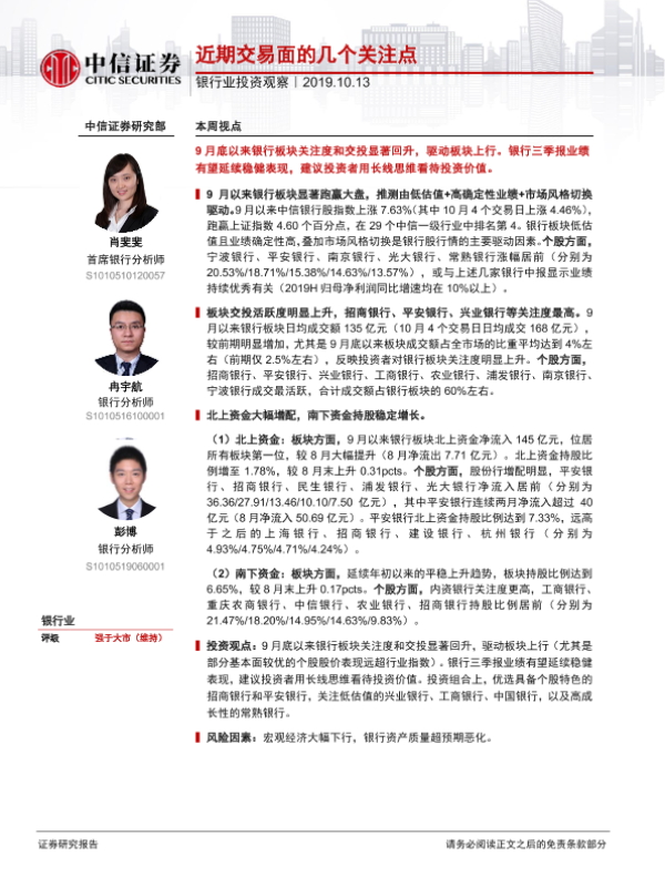 【中信证券】【20191013】银行业投资观察:近期交易面的几个关注点-8页