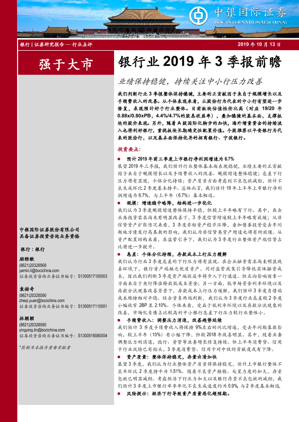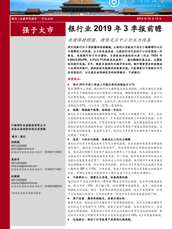 【中银证券】【20191013】银行业2019年3季报前瞻-7页