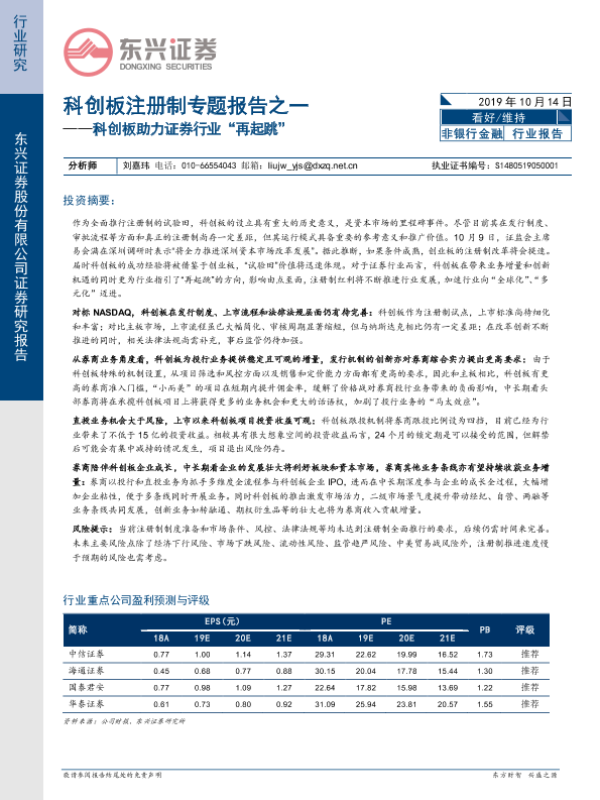 【东兴证券】【20191014】科创板助力证券行业'再起跳'-23页