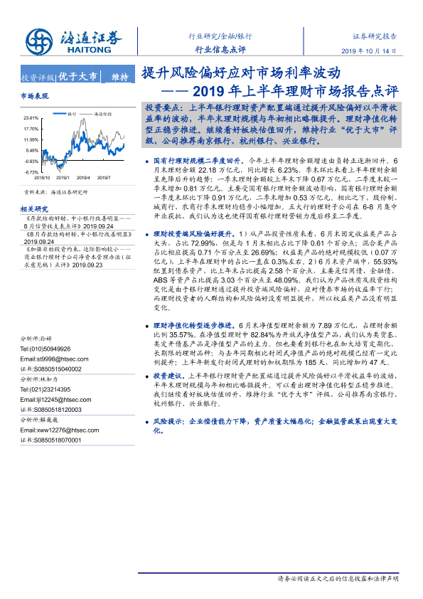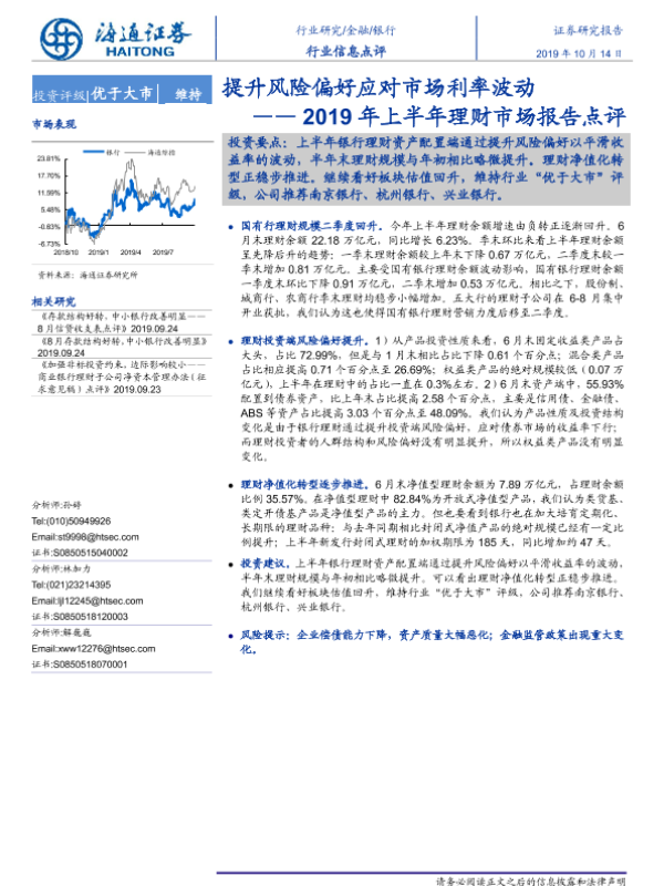 【海通证券】【20191014】提升风险偏好应对市场利率波动——2019年上半年理财市场报告点评-4页