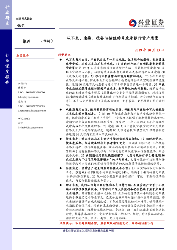 【兴业证券】【20191013】从不良、逾期、拨备与估值的角度看银行资产质量-32页