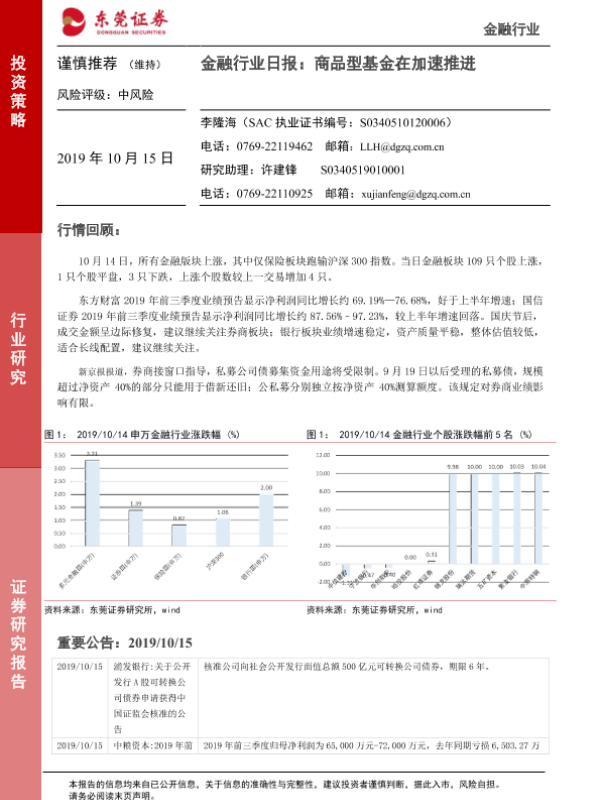【东莞证券】【20191015】金融行业日报:商品型基金在加速推进-4页