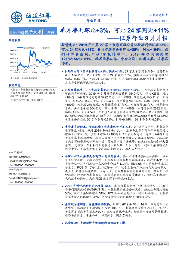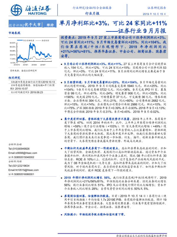 【海通证券】【20191015】证券行业9月月报:单月净利环比+3%,可比24家同比+11%-8页