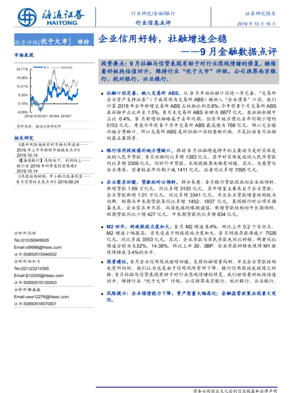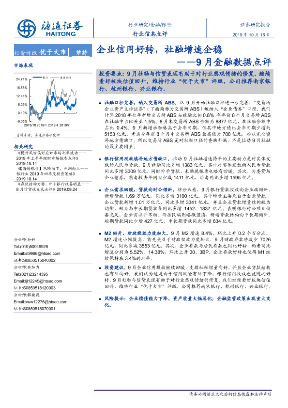 【海通证券】【20191016】9月金融数据点评:企业信用好转,社融增速企稳-3页