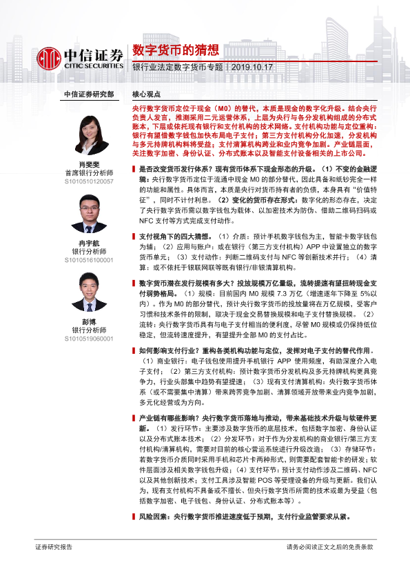 【中信证券】【20191017】银行业法定数字货币专题:数字货币的猜想-14页