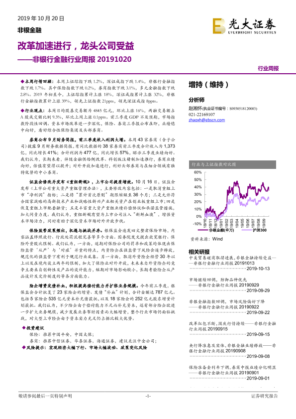 【光大证券】【20191020】非银行金融行业周报:改革加速进行,龙头公司受益-13页