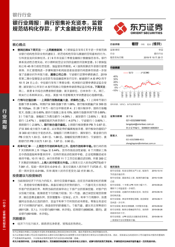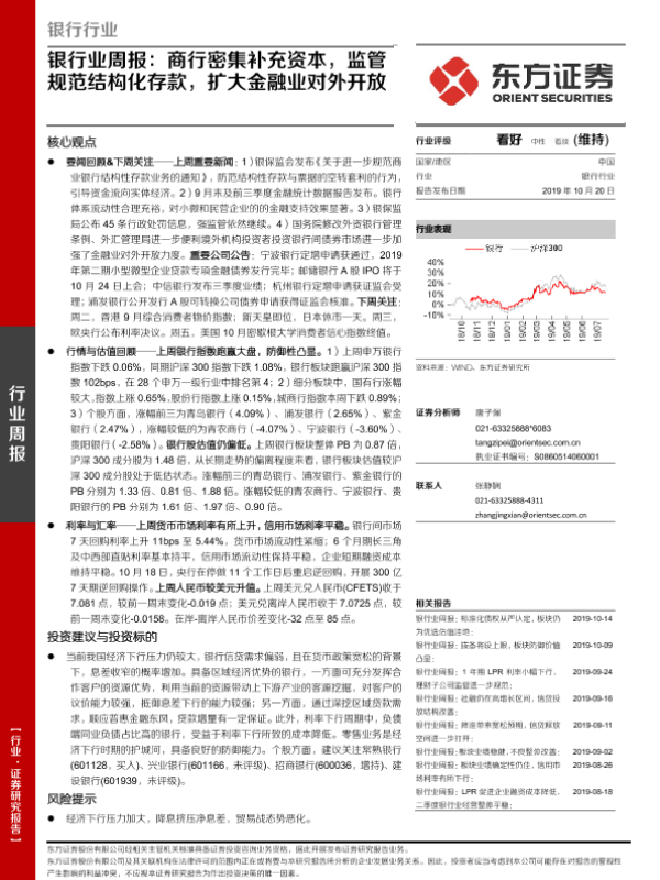 【东方证券】【20191020】银行业周报:商行密集补充资本,监管规范结构化存款,扩大金融业对外开放-14页