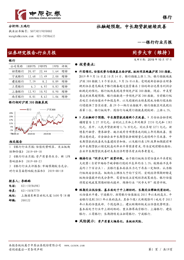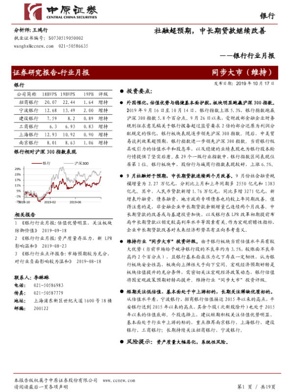 【中原证券】【20191017】社融超预期,中长期贷款继续改善-19页
