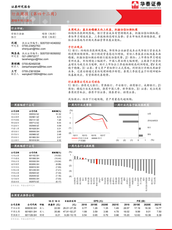 【华泰证券】【20191020】非银行金融行业周报(第四十二周)-25页